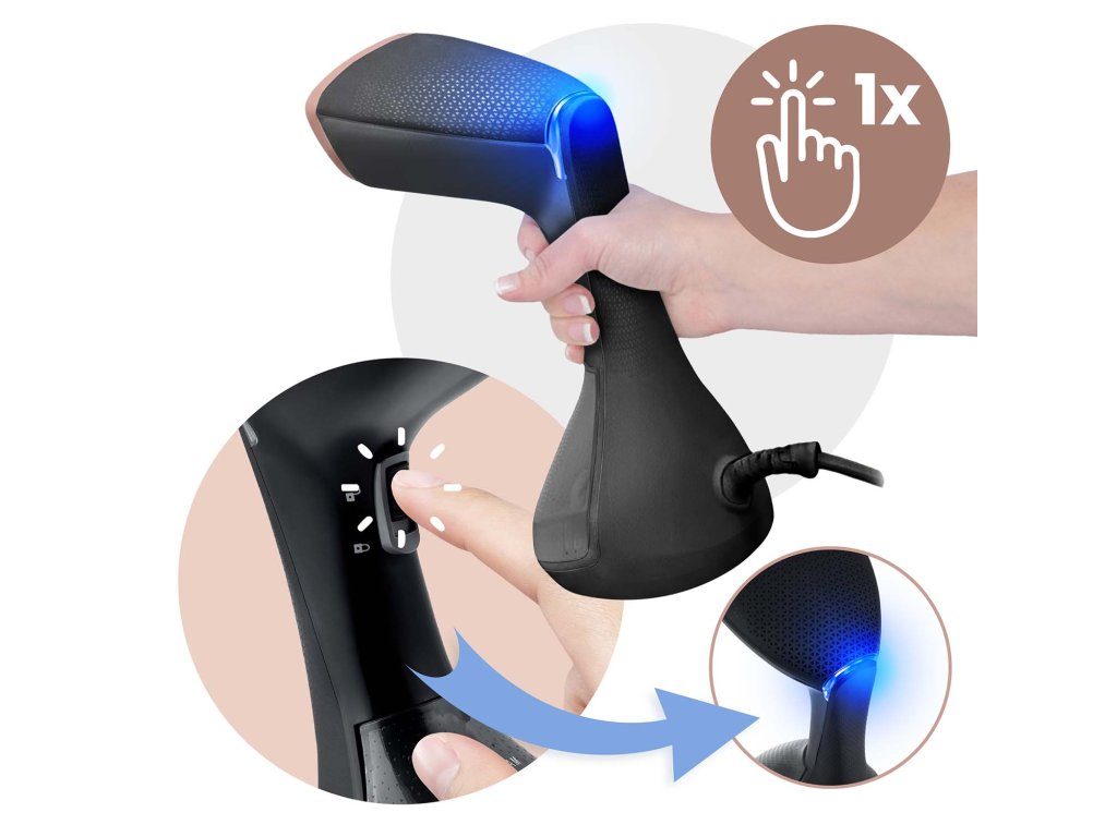 - Un singur buton — este suficient un singur buton pentru a porni dispozitivul și a începe jetul de abur.