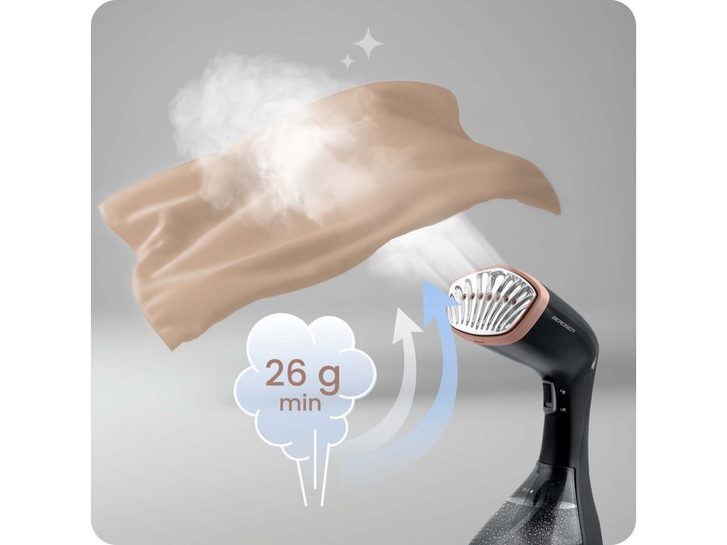 - Jet de 26 g/min asigură puterea aburului suficientă pentru a face față chiar și celor mai persistente cute.