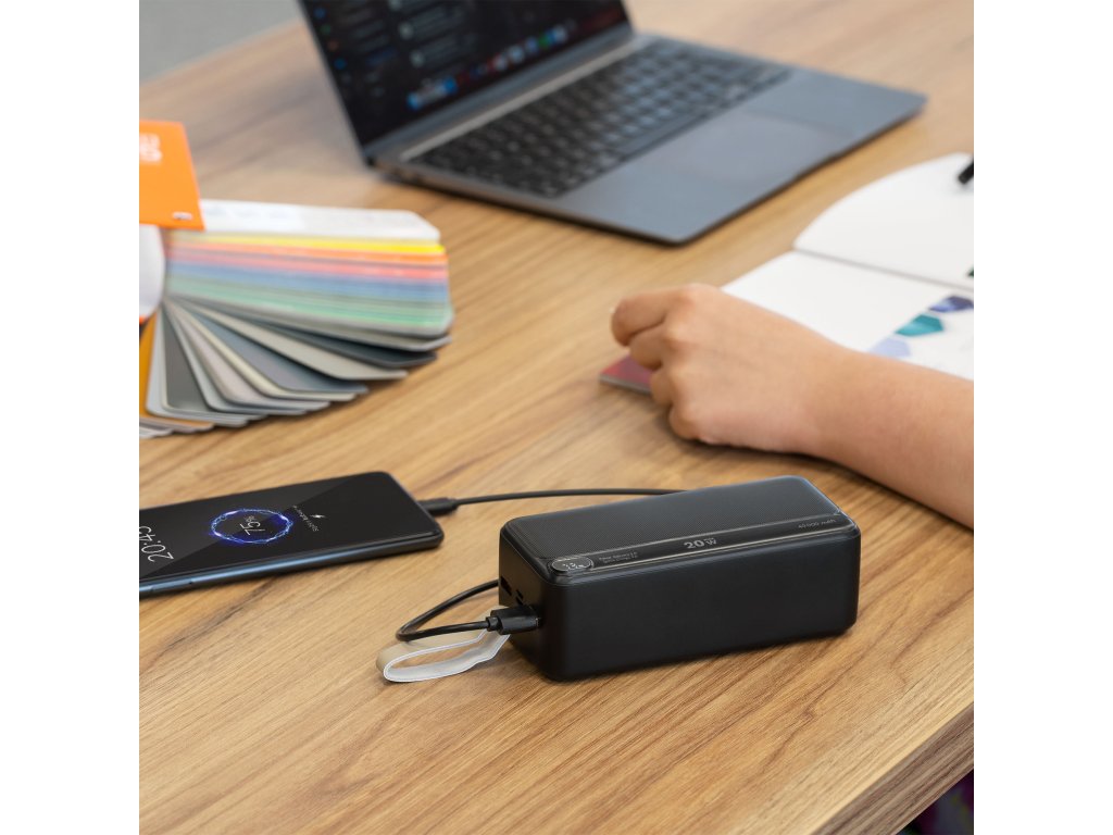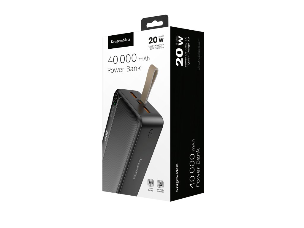KM0908 este cu adevărat o powerbankă puternică! Dispozitivul este echipat cu o celulă litiu-ion de mare capacitate 40.000 mAh . Datorită acestui lucru, aveți întotdeauna la îndemână o rezervă de energie pentru a prelungi orele de funcționare ale smartphone-ului, tabletei, laptopului, difuzorului Bluetooth și altor dispozitive care necesită încărcare.