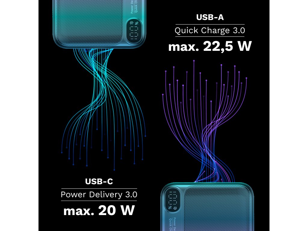 Powerbanka Kruger&Matz este echipată cu funcția încărcării rapide . În funcție de dispozitivul pe care îl aveți, puteți utiliza tehnologia Quick Charge (încărcare de la portul USB) sau Power Delivery de la portul USB Type-C. Reconectarea cu lumea durează doar câteva momente.