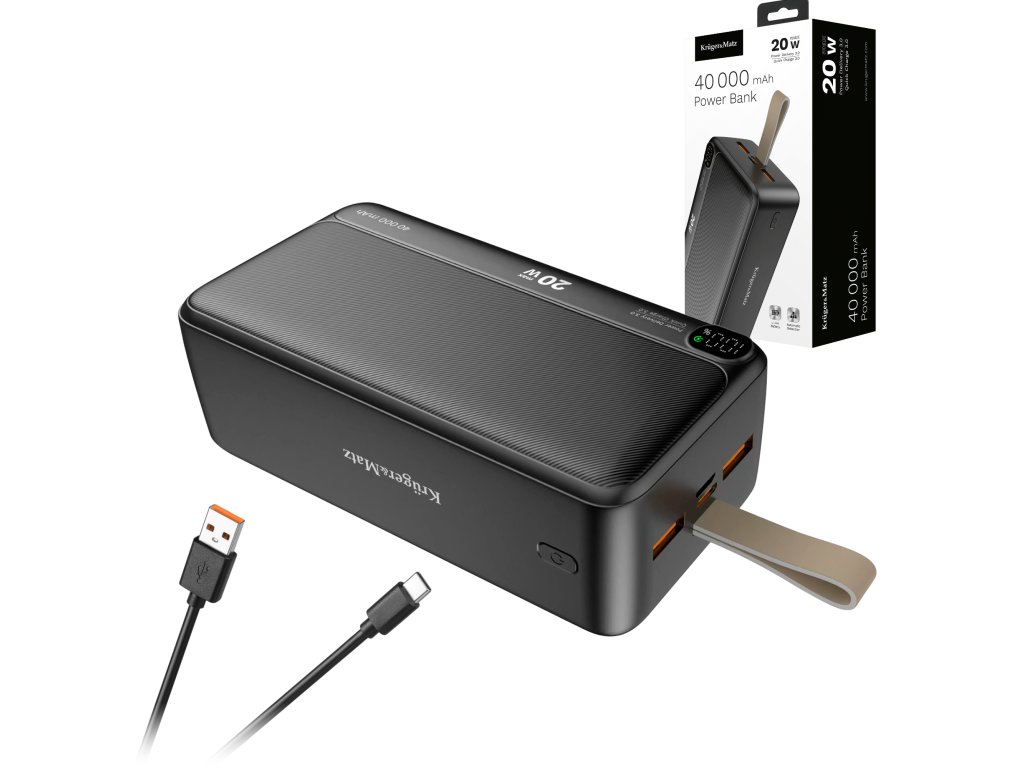 Powerbanka spațioasă Kruger&Matz, echipată cu două porturi USB, USB-C și micro USB, oferă o gamă largă de compatibilitate. Datorită funcționalității sale avansate, dispozitivul este ideal pentru încărcarea diferitelor dispozitive electronice la birou, în călătorii sau camping.