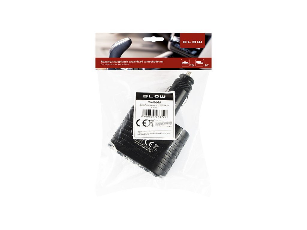 Împărțitor de brichetă auto pentru două prize S-23Împărțitorul este destinat pentru instalare în mașini de 12V și 24V. Mufa este potrivită pentru prizele standard ale brichetelor auto cu diametrul de 21 mm. Împărțitorul are protecție împotriva scurtcircuitelor sub forma unei siguranțe din sticlă WTA înlocuibile și iluminare albastră.