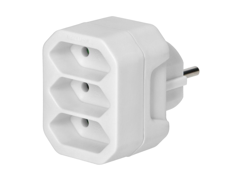 Adaptor priză cu trei ieșiri alb european