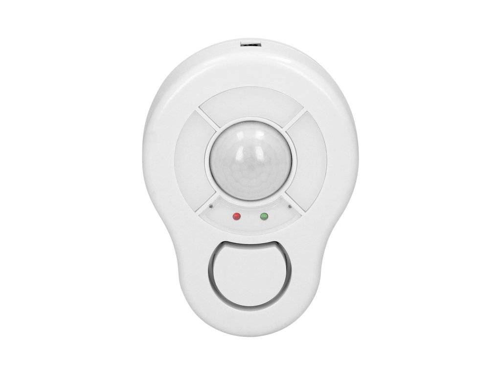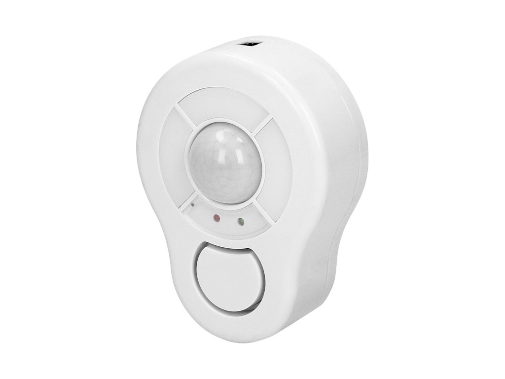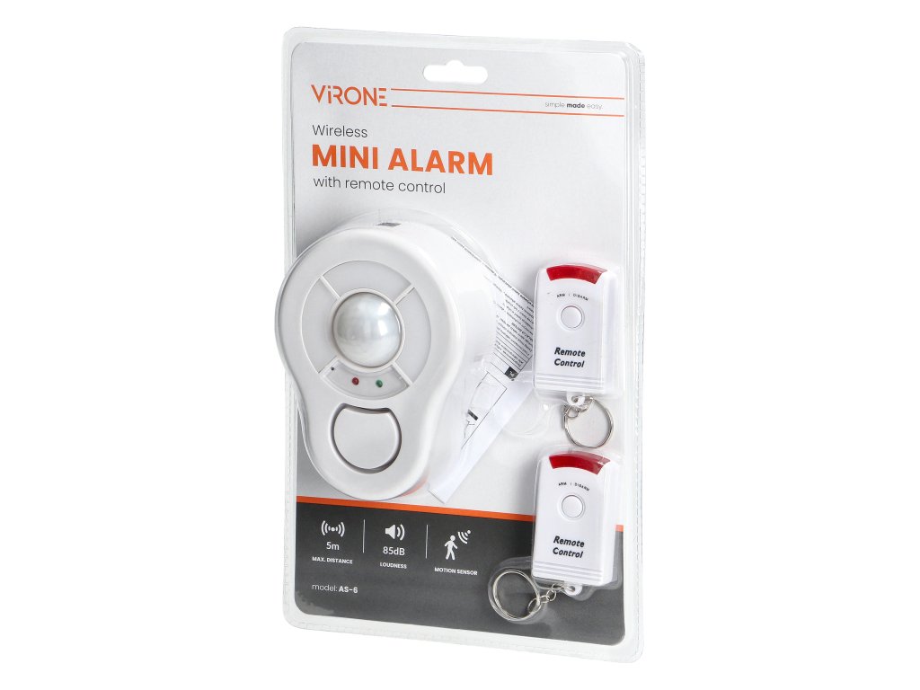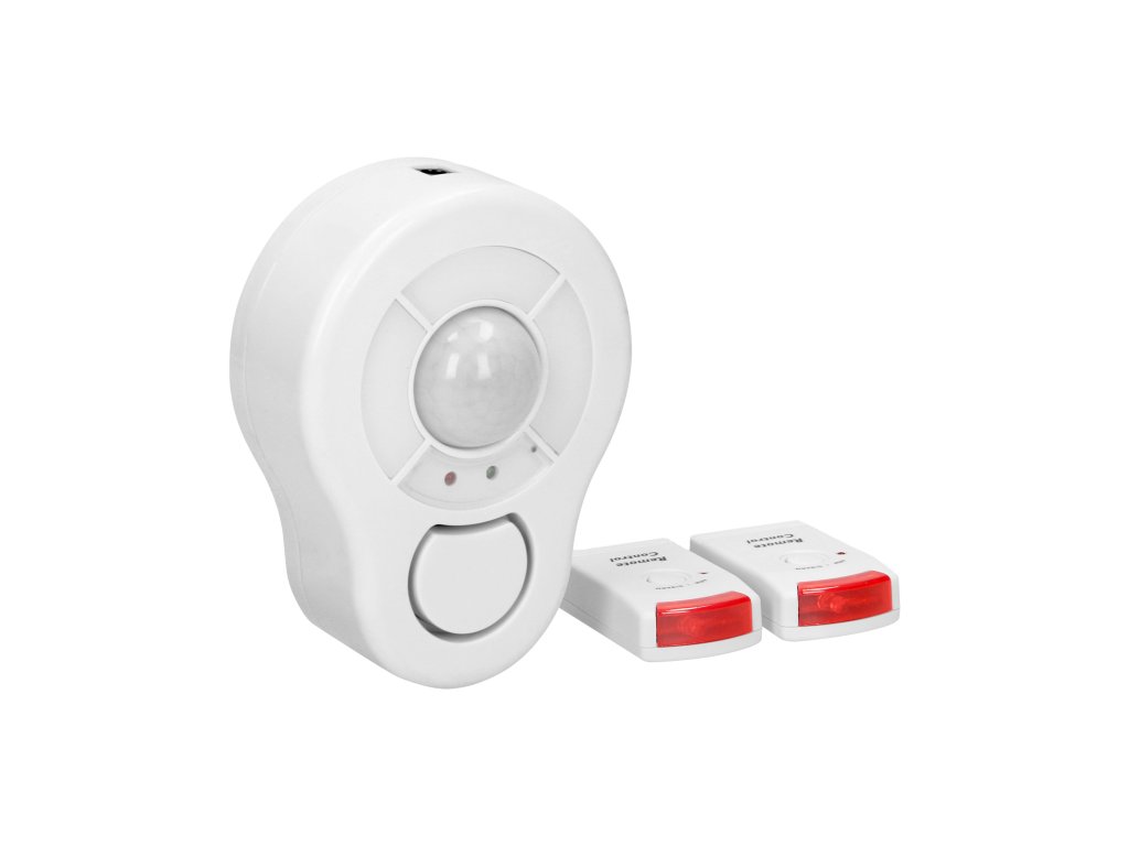 Dispozitiv portabil de alarmă infraroșu cu sirenă încorporată și senzor de mișcare, care poate fi controlat cu ajutorul unei unități de telecomandă. Această alarmă miniaturală detectează mișcarea de la o distanță de 5 metri într-un unghi de 360°. Volumul sirenei este de 85 dB.Specificații tehnice