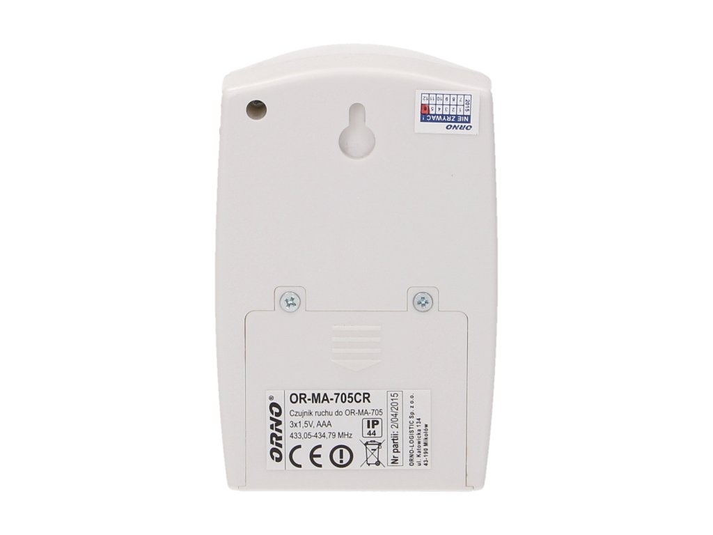 Acest senzor de mișcare PIR reacționează la schimbările de temperatură din spațiul detectat și trimite un impuls wireless către receptor prin unde radio, care ulterior alertează despre mișcarea detectată în spațiul protejat printr-un semnal sonor și unul luminos (LED). Gradul de protecție IP44 permite instalarea acestuia în încăperi cu umiditate crescută. Indicație baterie slabă. Sistem de învățare (configurare automată a senzorilor și pagerelor suplimentare).