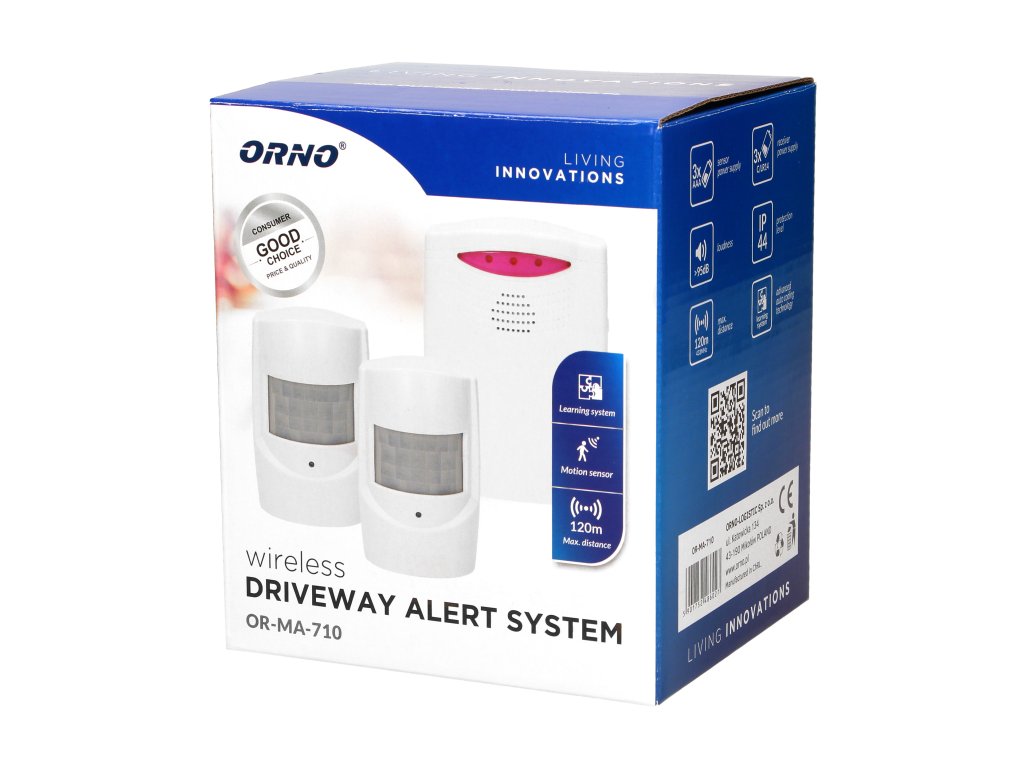 Senzorul PIR care reacționează la schimbările de temperatură din zona de detectare trimite impulsuri fără fir (prin unde radio) către receptor, care alertează asupra mișcării detectate în zona protejată printr-un semnal sonor (ding-dong, ding-dong silențios sau alarmă) și semnal luminos (LED). Gradul de protecție IP44 permite instalarea acestuia în încăperi cu umiditate ridicată. Indicație baterie slabă. Sistem de învățare (configurare automată a senzorilor și pagerelor suplimentare).