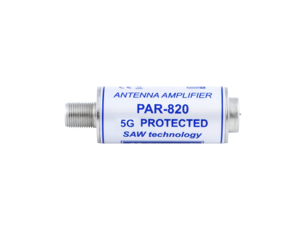 Preamplificatorul tubular TV PAR-820 5G PROTECTED este destinat amplificării semnalelor TV terestre slabe recepționate de o antenă terestră pasivă. Datorită tehnologiei SAW utilizate, preamplificatorul elimină în mare măsură semnalele 5G/LTE fără a elimina semnalele DVB-T2.