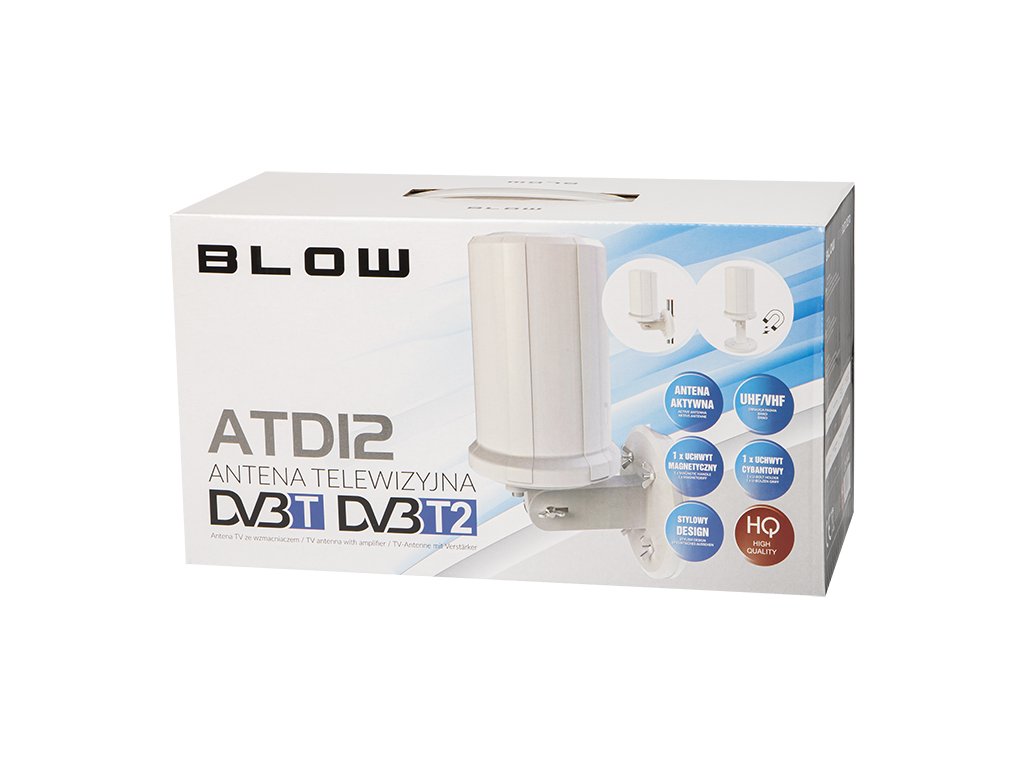 Antena activă cu amplificator destinată recepției standardului de televiziune digitală DVB-T și DVB-T2, cu posibilitate de rotire la 360 de grade. Antena se remarcă printr-o carcasă compactă și o rezistență crescută la umiditate. Există posibilitatea de montare a antenei cu bază magnetică, folosind un suport de prindere, și direct pe perete. Este ideală ca antenă exterioară sau interioară.