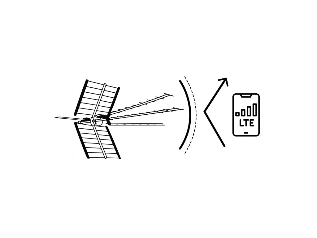 Antena are un filtru LTE integrat care elimină interferențele cauzate de rețelele mobile (ex. 4G/5G).
