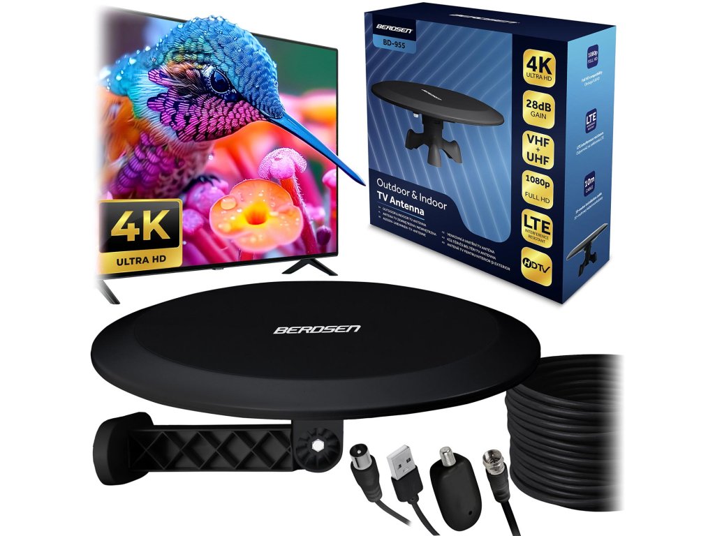 Antena interioară exterioară TV ultra HD 4K Berdsen BD-955 neagră