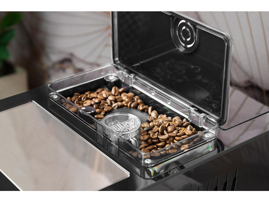 Nu puteți începe ziua fără o cafea din boabe proaspăt măcinate Espressorul AROMA 800 este echipat cu o râșniță de cafea boabe, care nu doar că permite obținerea aromei maxime din fiecare bob, dar construcția sa robustă asigură că espressorul va rezista mulți ani.