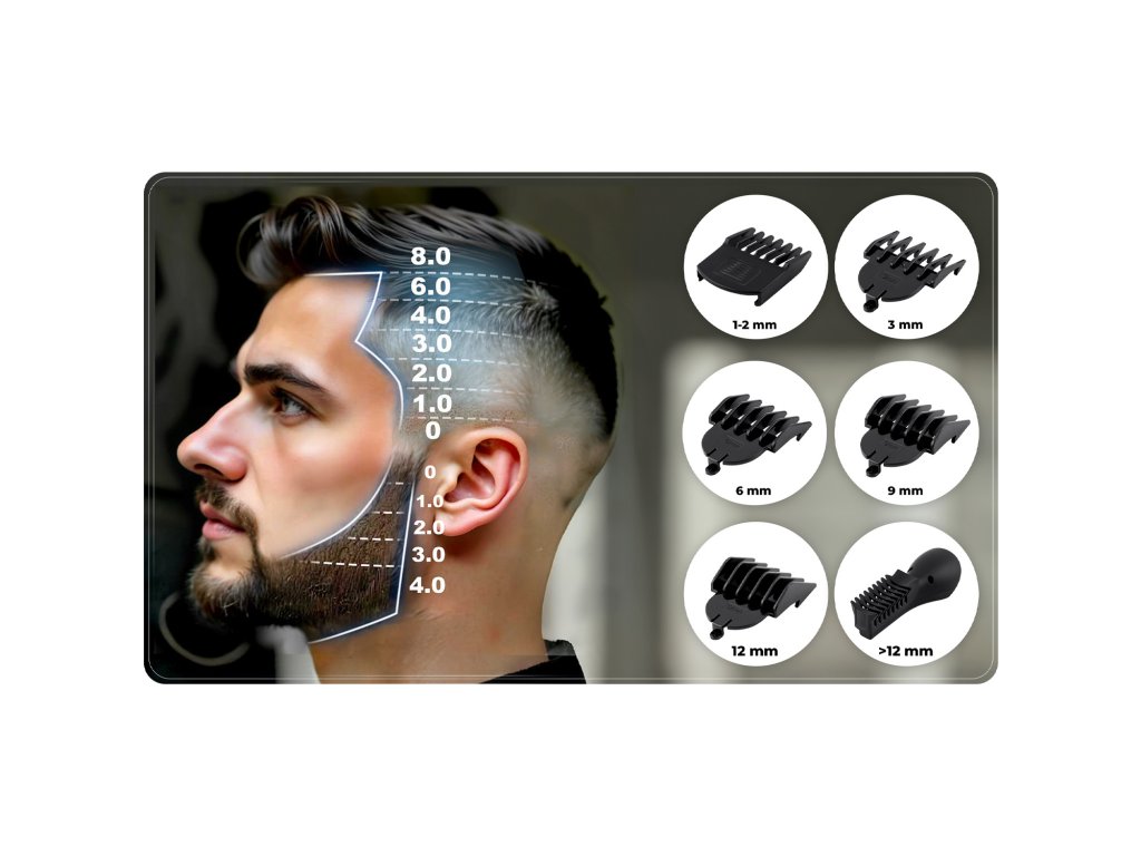 - Umbrire precisă – accesoriile pieptene de 1-12 mm creează tranziții liniare ale lungimii.