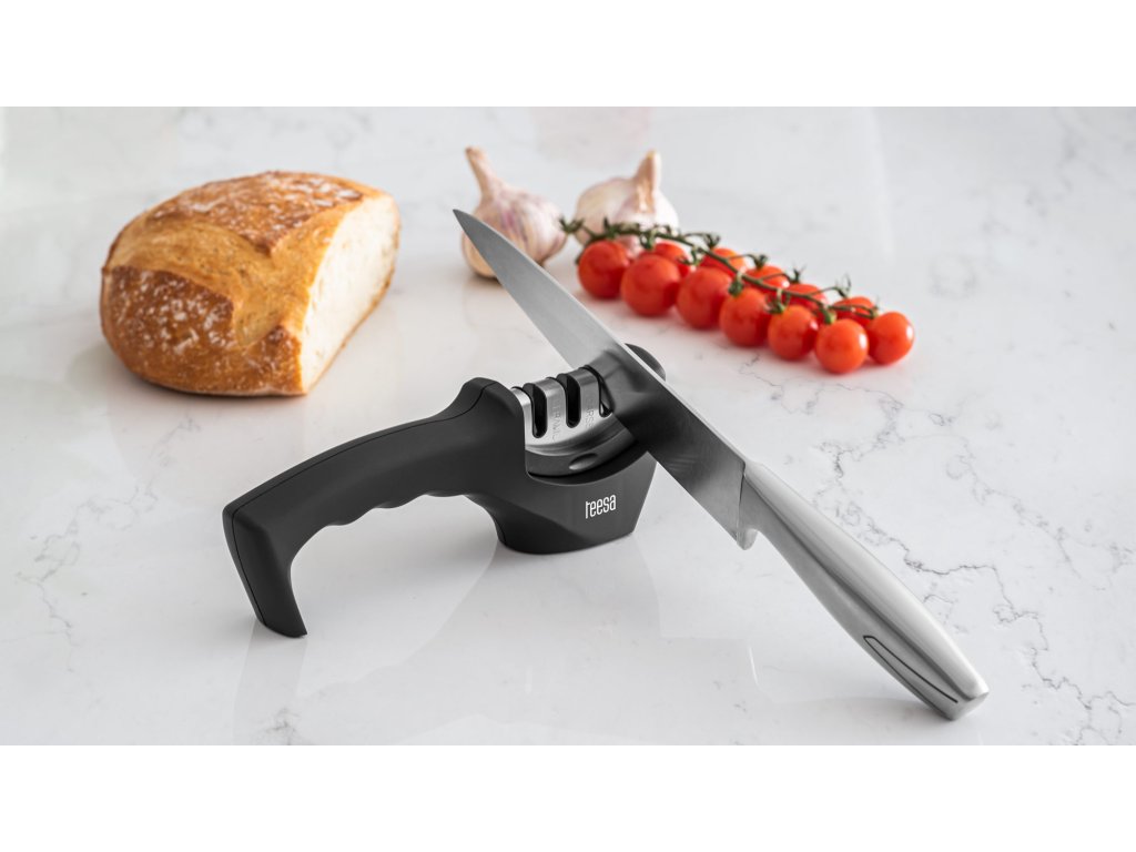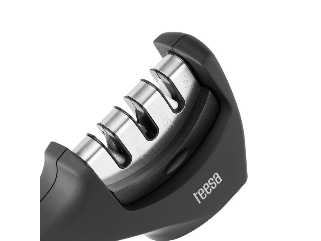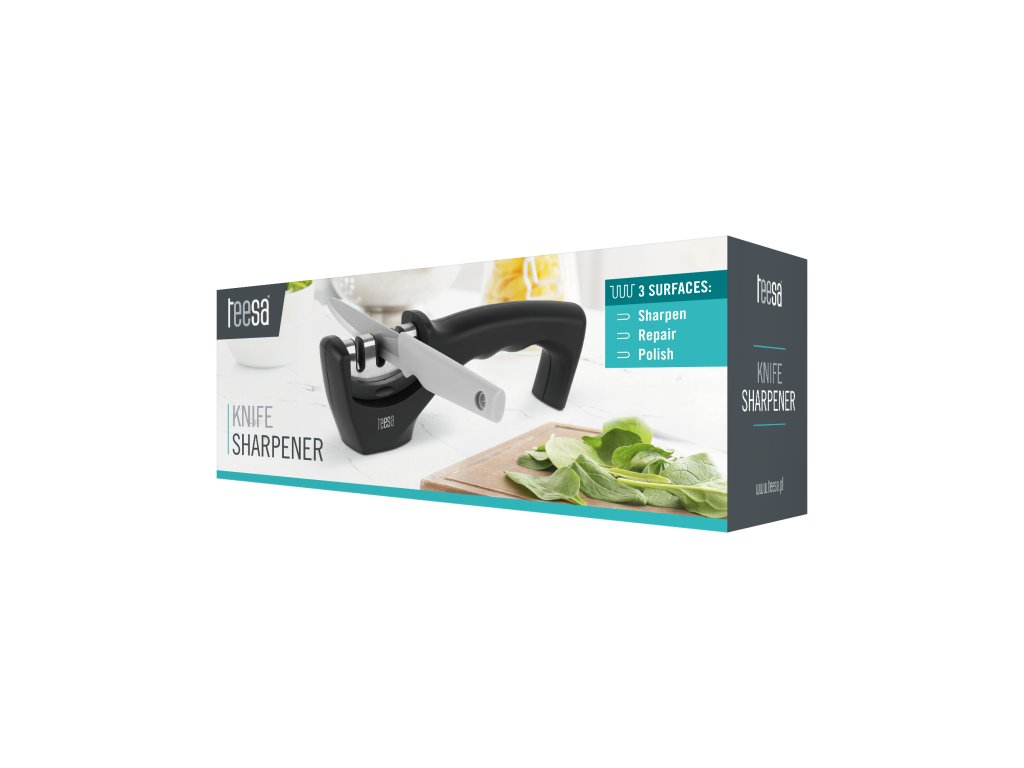 Dacă vă întrebați care este cel mai bun ascuțitor de cuțite pentru dumneavoastră, recomandăm modelul cu trei trepte Teesa TSA0184. Este un instrument practic, ideal pentru dreptaci și stângaci, care ascuțește, netezește și lustruiește rapid chiar și cele mai tocite lame. Tot ce trebuie să faceți este să introduceți cuțitul în orificiul de ascuțire corespunzător.