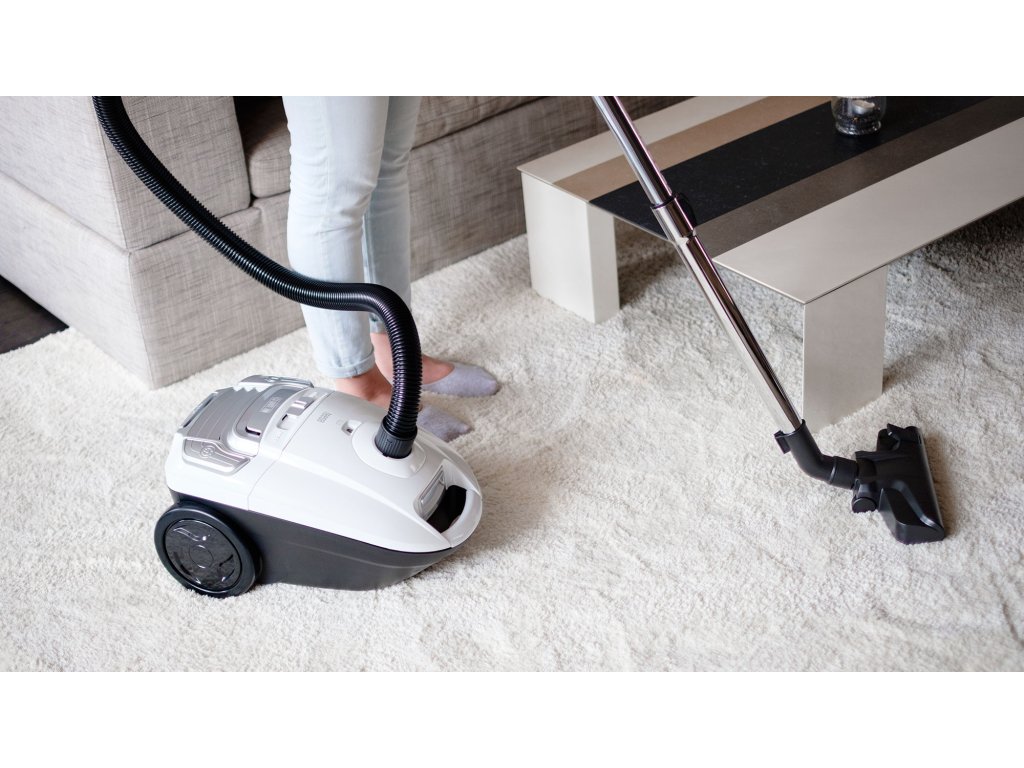 Aparatul ECO WHITE 700 este extrem de confortabil de utilizat și de depozitat. Are roți robuste, un mâner ergonomic pentru transport ușor, funcție de auto-rulare a cablului și posibilitatea de depozitare verticală și orizontală. În plus, aspiratorul este dotat cu un sac de 3 litri, iar indicatorul integrat vă informează când este plin.