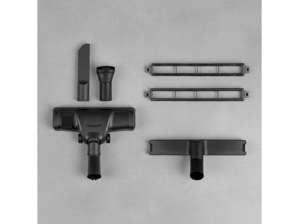 de murdărie, care vă permite să lucrați o perioadă lungă fără a fi nevoie să-l goliți. Ar trebui să vă concentrați pe filtrul universal HEPA, care este potrivit pentru murdărie uscată și umedă. Aspiratorul este echipat cu 4 duze interschimbabile, care vă permit să îndepărtați murdăria de pe diferite suprafețe și din locuri greu accesibile.