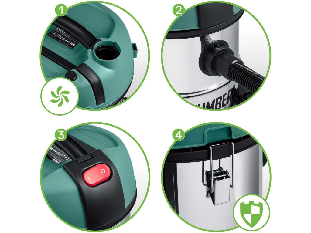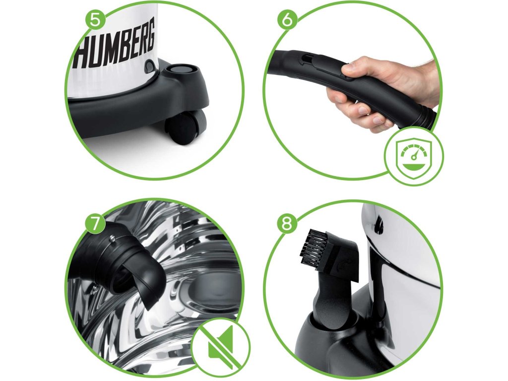 4.Accesorii din metal rezistente, care nu se vor rupe nici la sarcină maximă. Aspiratorul este echipat cu un rezervor mare de până la 20 de litri.