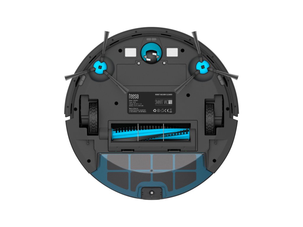 Robotul de curățare avansat Teesa cu 4 niveluri de putere de aspirație, precum și cu o perie principală rotativă robustă și două perii laterale, îndepărtează perfect murdăria de pe orice suprafață, chiar și pe cea acumulată la margini sau în colțuri.