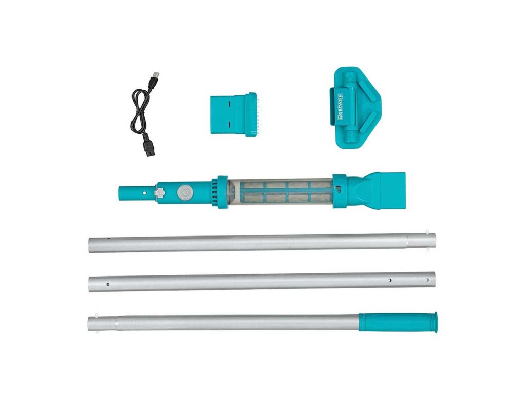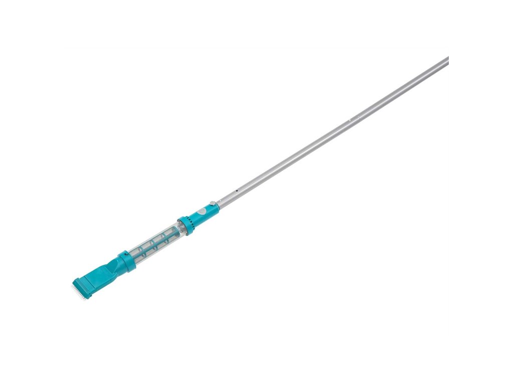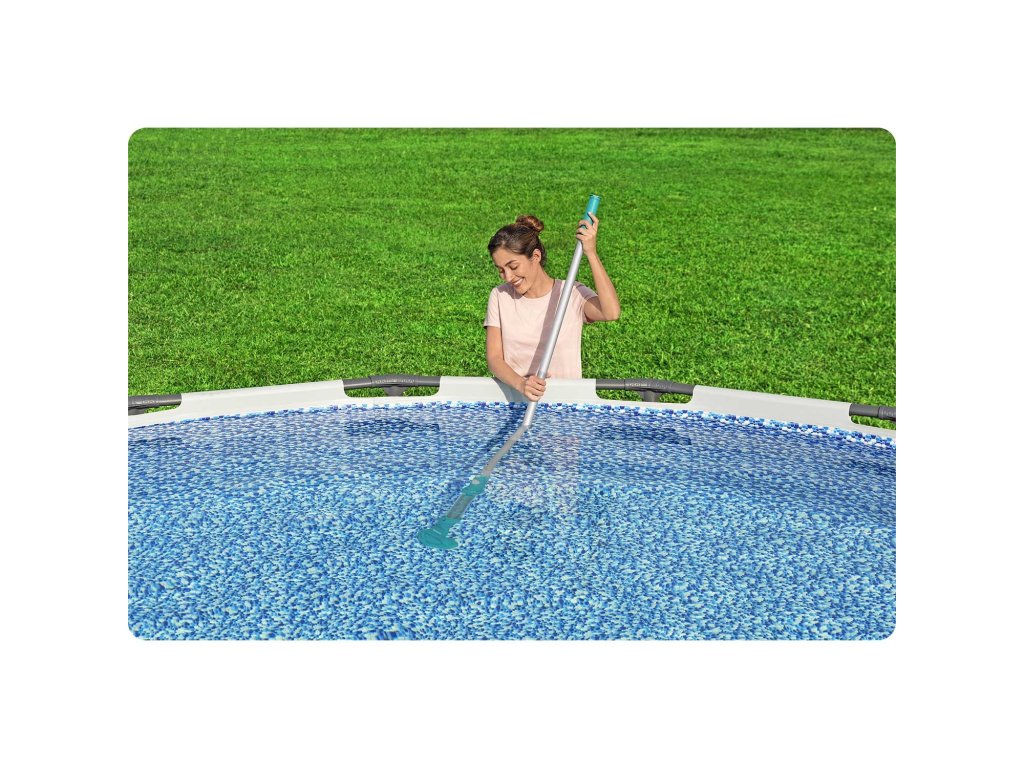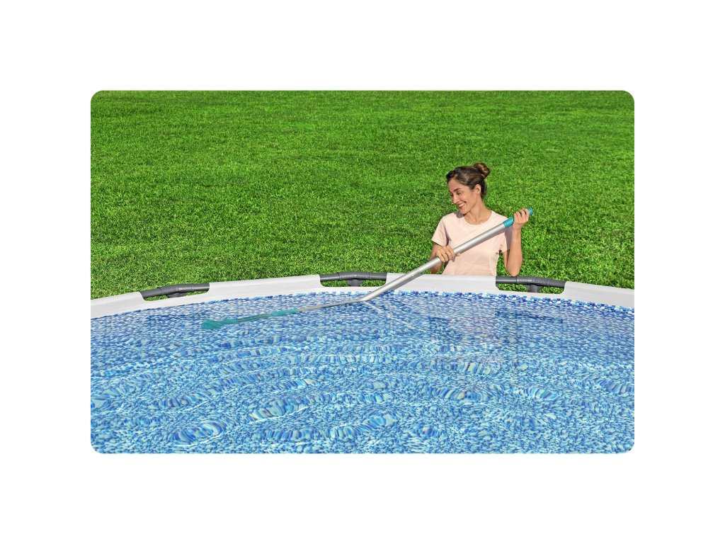 Setul include o tijă telescopică din aluminiu cu o lungime maximă de 2 m, permițându-vă să curățați fără probleme chiar și piscinele mai mari.