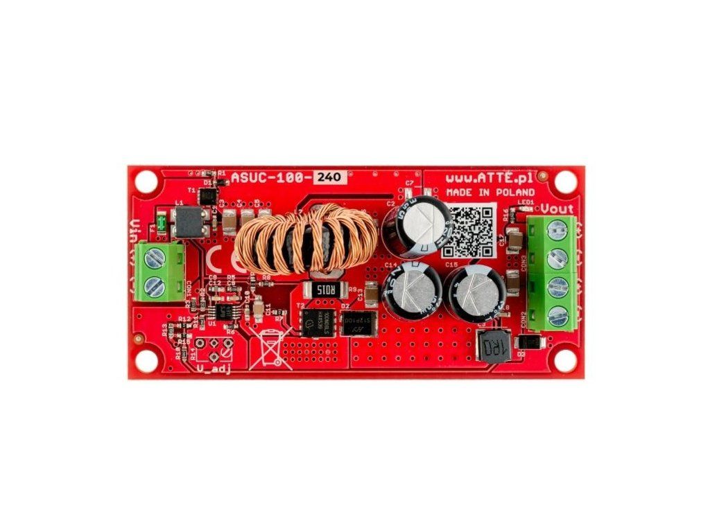 ATTE ASUC-100-240-OF este un convertor neizolat de tensiune CC/CC cu o eficiență foarte ridicată de peste 93%. Sistemul crește tensiunea de intrare în intervalul de la 10 VDC la 24 VDC, oferind la ieșire o tensiune continuă stabilizată de 24 VDC. Merită menționat că convertorul consumă un curent scăzut de 27 mA. Este adaptat pentru funcționarea la temperaturi de la -20°C la 40°C. Utilizarea sa tipică este generarea unei tensiuni de alimentare de 24 VDC dintr-o tensiune de 12 VDC, provenind dintr-o sursă de alimentare externă.