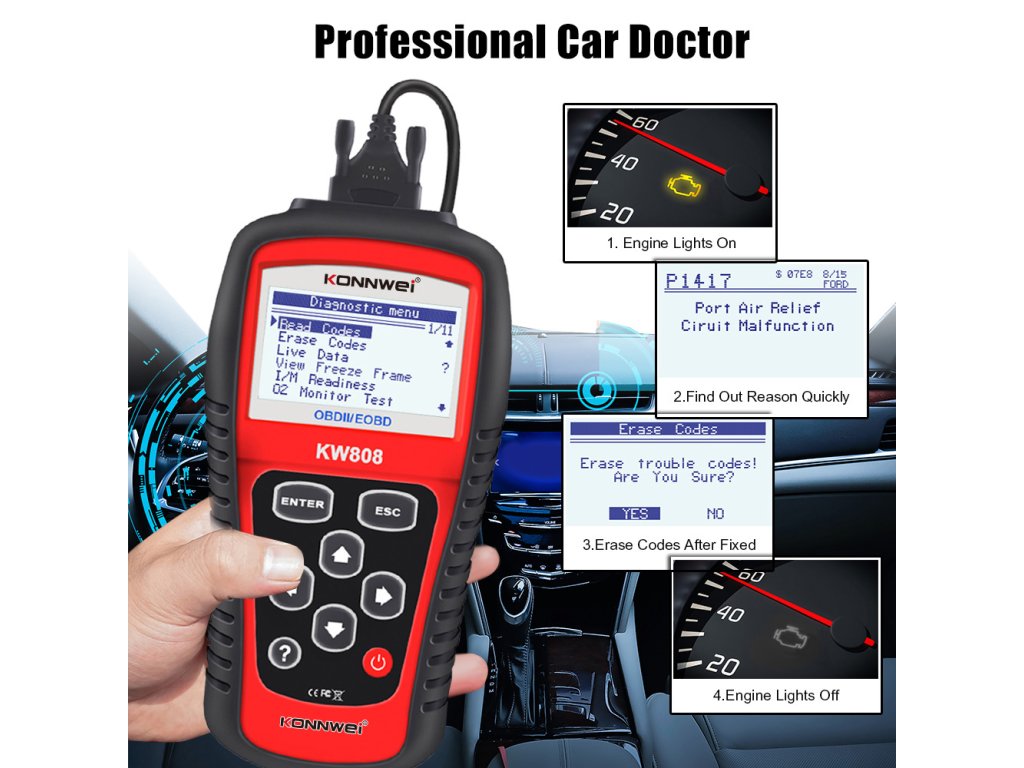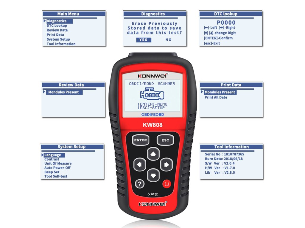 Autodiagnosticare OBD2 Konnwei KW808