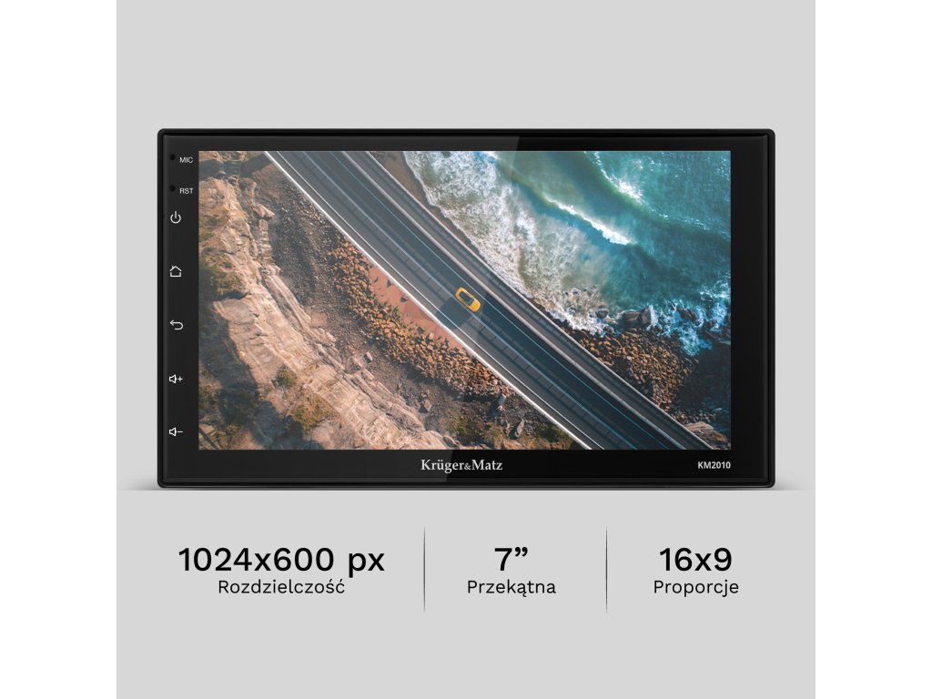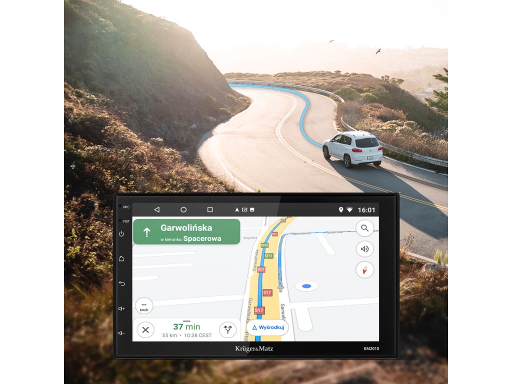 Autoradio Kruger&Matz KM 2010 este echipat cu un modul Wi-Fi, care permite conectarea ușoară la internet. În plus, modulul GPS vă permite să utilizați în mod liber Google Maps pe dispozitiv în timp ce ascultați radio. Acum nu trebuie să renuntați la muzica preferată când trebuie să găsiți drumul pe autostradă.