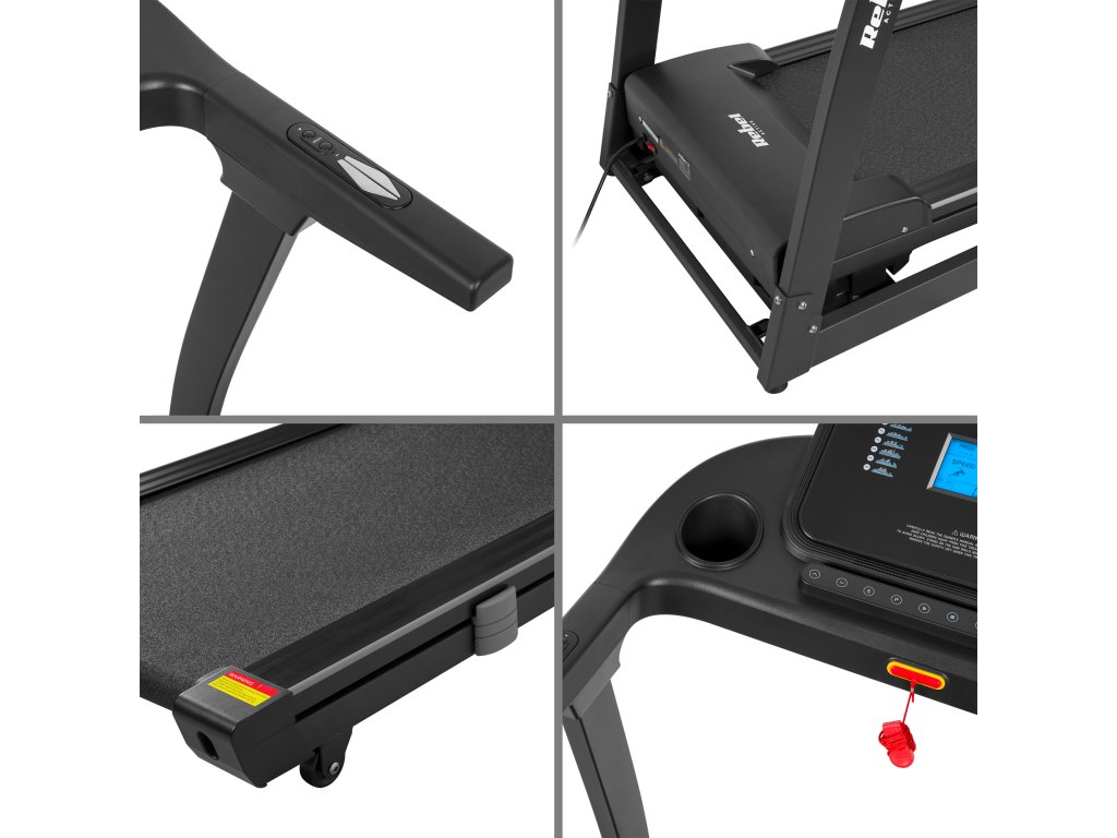 Banda de alergat de acasă Rebel Active are rafturi practice pentru o sticlă de apă sau o băutură izotonică. Datorită acestora, vei menține o hidratare corectă în timpul antrenamentului, fără a fi nevoit să te oprești din alergat.