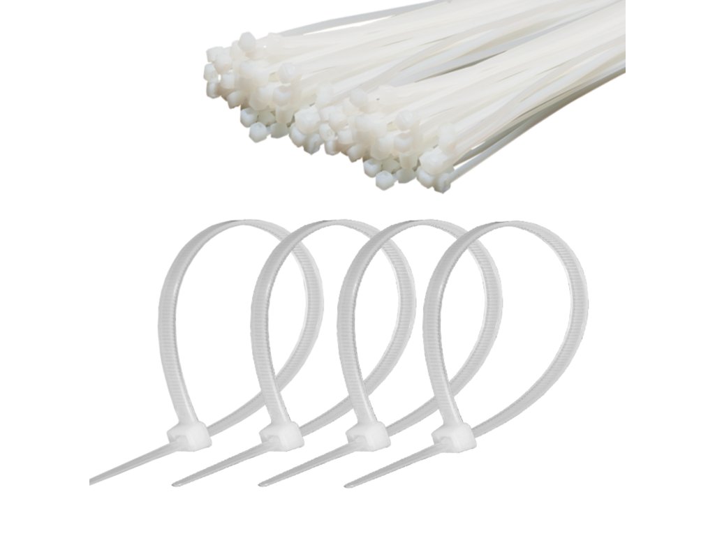 NAR0047-25.1 Legături de cablu albe 4,8mm/25cm(100buc)