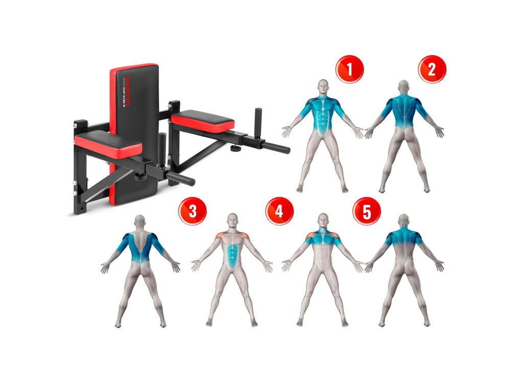 5 în 1 – puteți exersa până la 5 grupe de mușchi: brațe, spate, abdomen, spate și piept. Un număr mare de variante de exerciții!