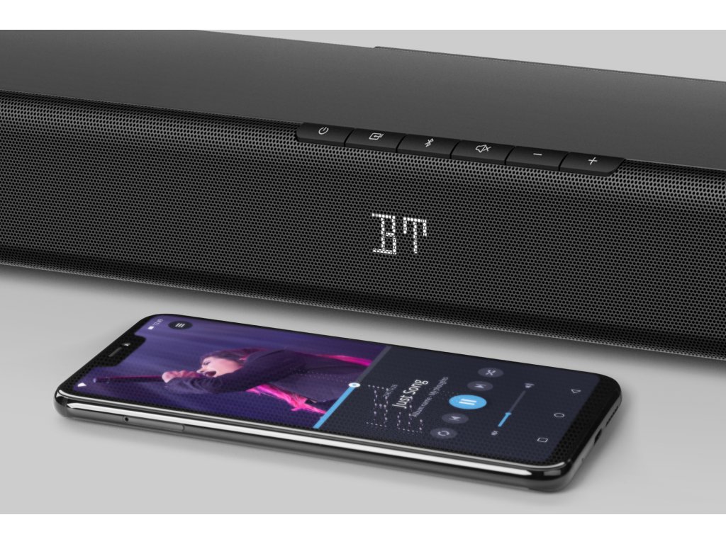 Deși soundbar-ul este adesea utilizat pentru a îmbunătăți sunetul televizorului, aceasta nu este singura lui utilizare. Datorită funcției Bluetooth, poți reda și piesele tale preferate stocate în playlist-ul din smartphone fără a avea nevoie de cabluri suplimentare.