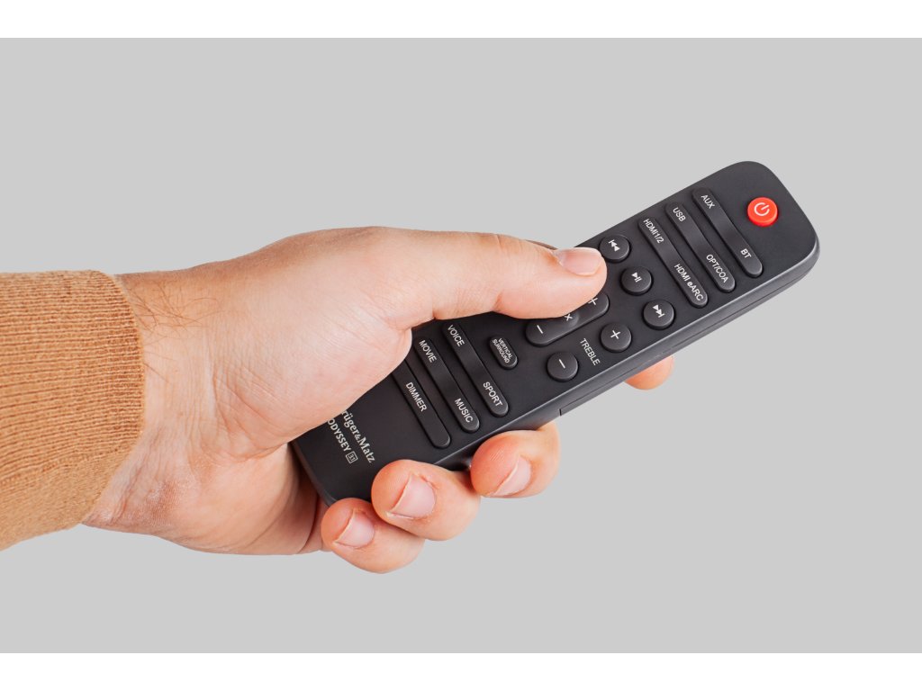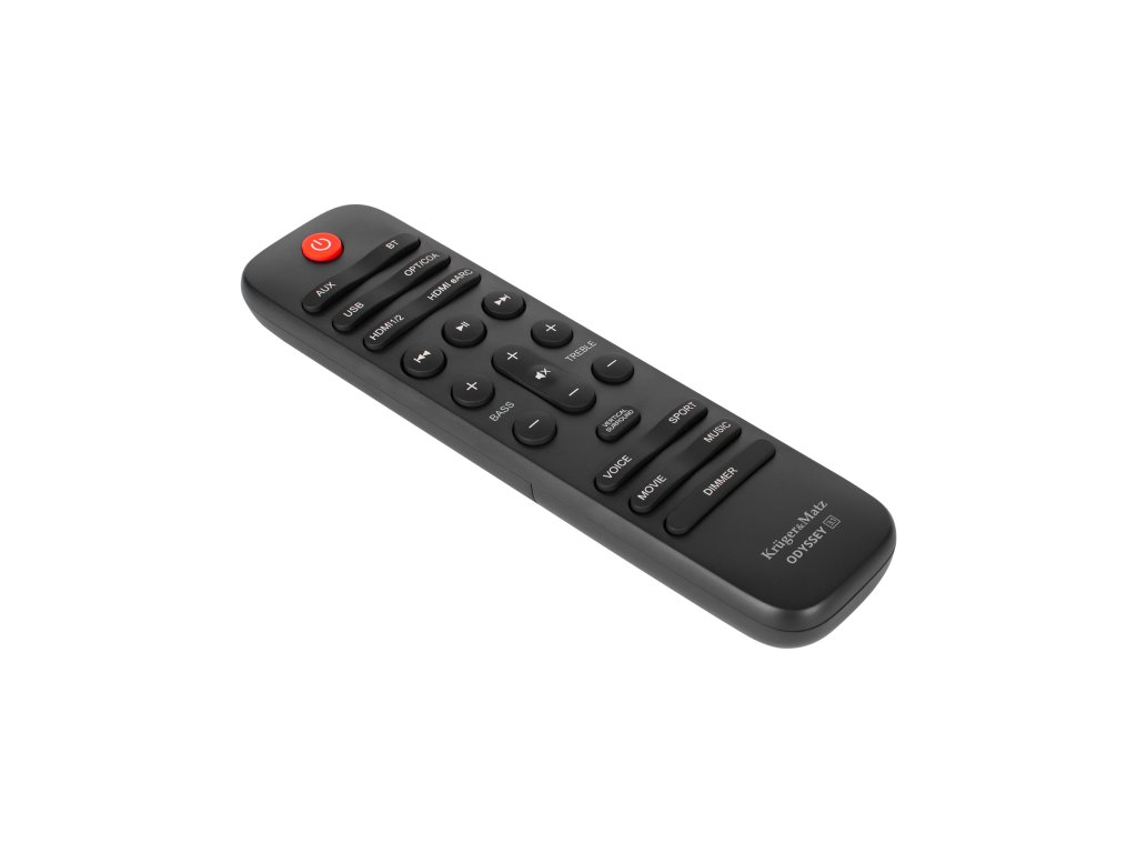 Nu trebuie să te ridici de pe canapea pentru a putea gestiona setările și funcțiile soundbar-ului. Kruger&Matz Odyssey se controlează cu ajutorul unei telecomenzi care, printre altele, permite selectarea sursei de sunet, alegerea modului și setarea bass-ului și a înaltelor.