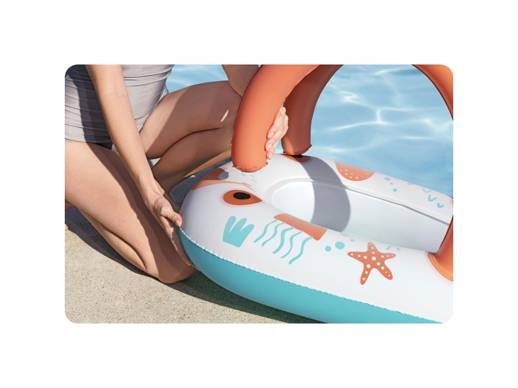 Bărcuța este realizată din PVC rezistent la apă sărată și soare.