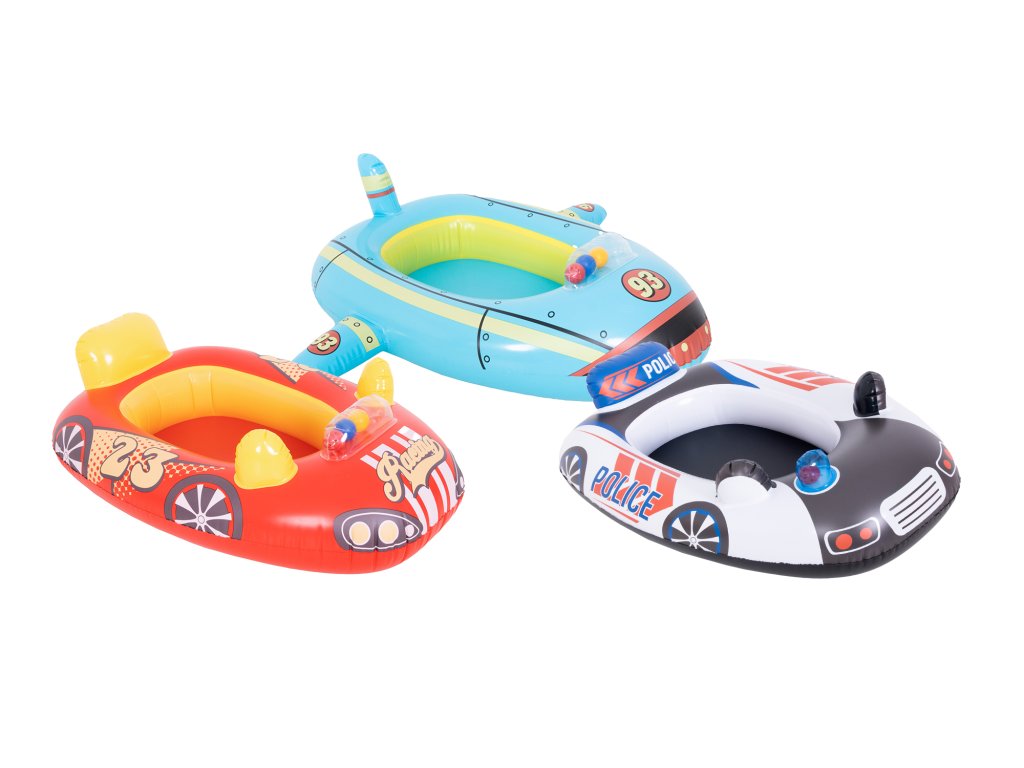 Fiecare copil are visele sale – unul vrea să zboare, altul să alerge pe pistă, iar altul să devină erou în uniformă. De aceea, barca este disponibilă în trei versiuni: avion, mașină de curse și mașină de poliție. Detaliile realiste, culorile vii și aspectul vesel stimulează imaginația și fac ca fiecare bălăceală să devină o scenă de joacă.