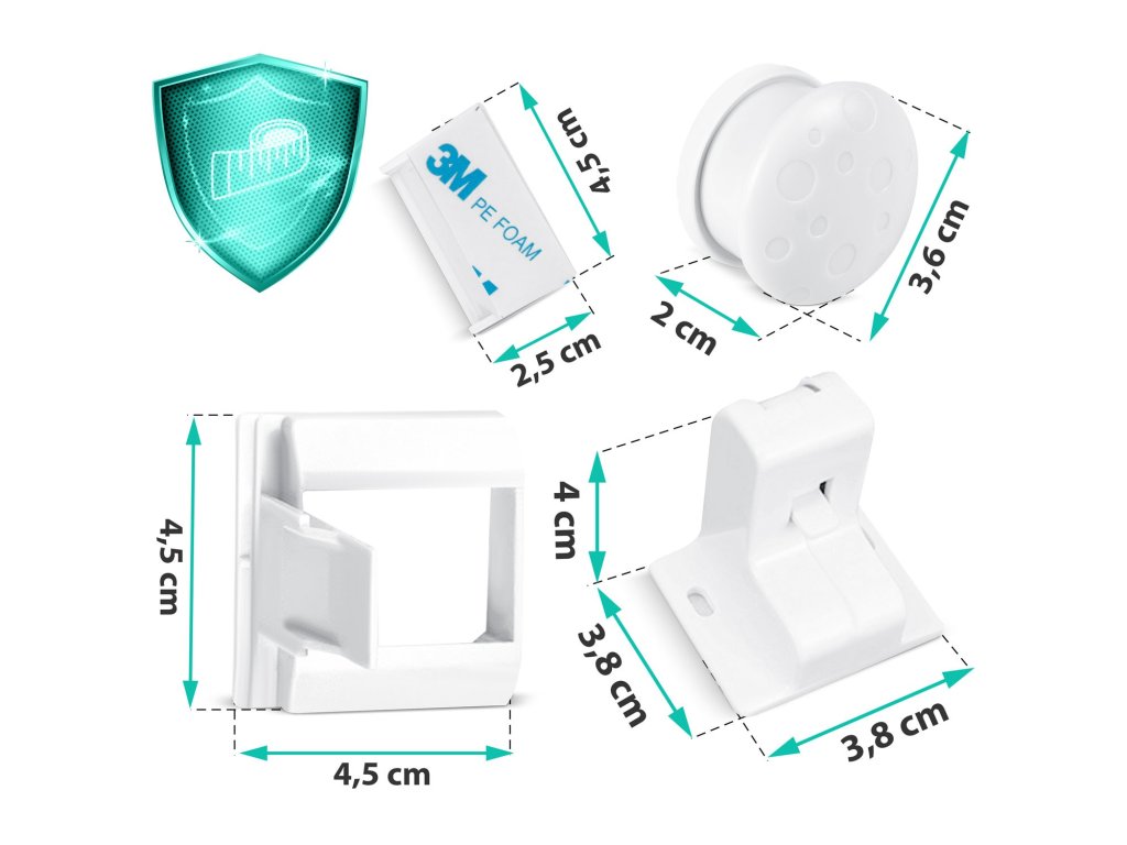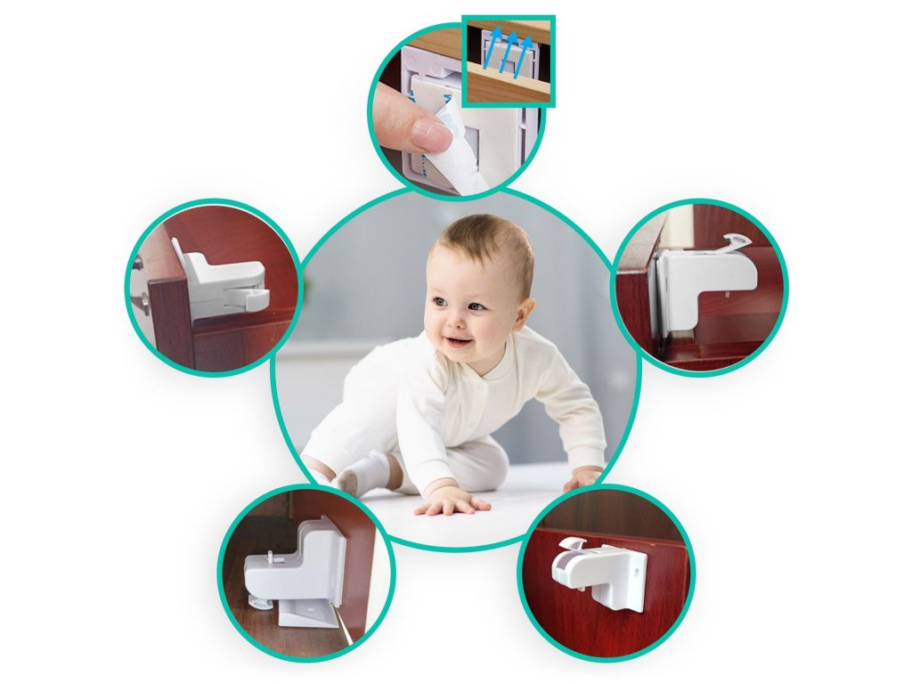 de prinderea degetelor și accesul la interiorul sertarului. Copilul nu poate deschide mobilierul trăgând sau împingând mânerul, deoarece acest lucru se poate face doar cu ajutorul unui cheie magnetic special.Nu sunt necesare instrumente!Setul conține 4 încuietori magnetice.