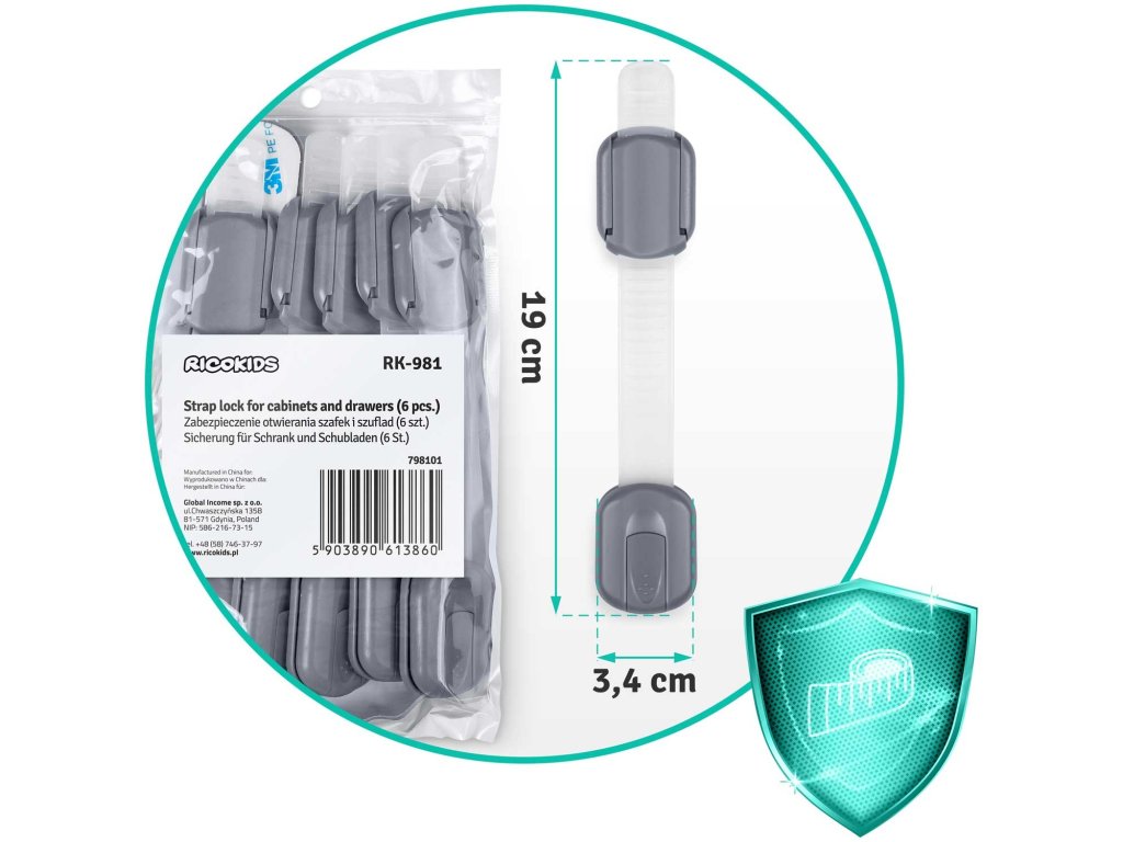 Un dispozitiv de siguranță practic, mic și estetic care va împiedica copilul să deschidă brusc un dulap sau un sertar .