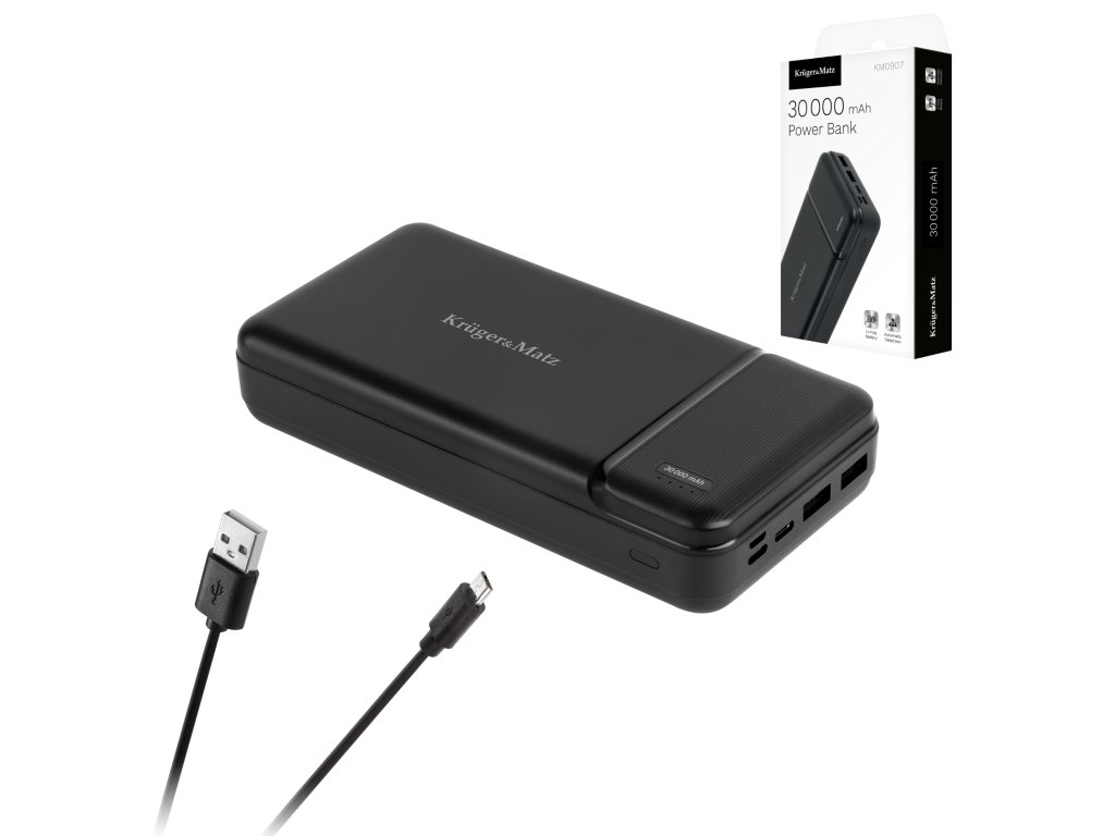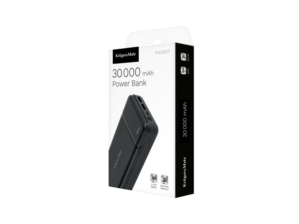 Aveți nevoie de un power bank cu adevărat puternic Modelul Kruger&Matz KM0907 are o celulă litiu-polimer cu o capacitate de 30 000 mAh, care vă permite să reîncărcați de mai multe ori smartphone-ul, camera foto sau laptopul. Este important de menționat că accesoriul este echipat cu 2 porturi USB, astfel încât puteți încărca două dispozitive simultan. Trebuie doar să conectați cablul, iar dispozitivul va recunoaște automat conexiunea și va începe să funcționeze.