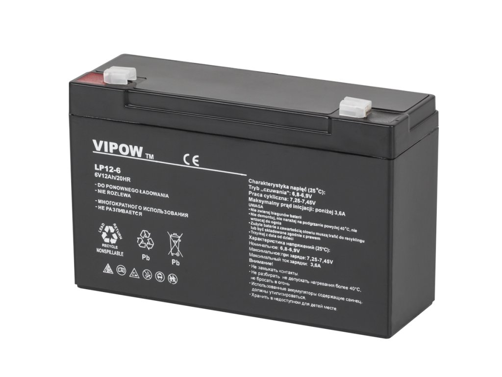 Bateria gel Vipow 6 V / 12 Ah