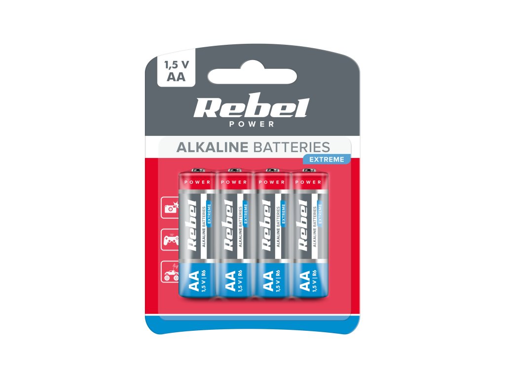 Bateriile Rebel Extreme pot fi utilizate cu succes în dispozitivele cu consum mare de energie, cum ar fi jucăriile electronice, CD/MP3 playere, dispozitive electronice portabile, lanterne, telecomenzi, camere foto sau camere video. Comparativ cu generația anterioară de baterii alcaline Rebel, capacitatea gamei Extreme a crescut cu 15%, ceea ce le face mai fiabile și pot fi utilizate pe o durată mai lungă de timp.