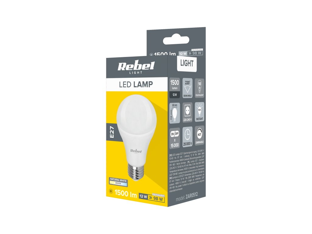 Bec LED E27, A60 12W 4000K 230V Rebel