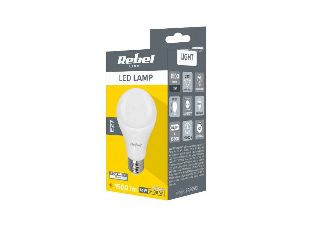 Bec LED E27, A60 12W 6500K 230V Rebel