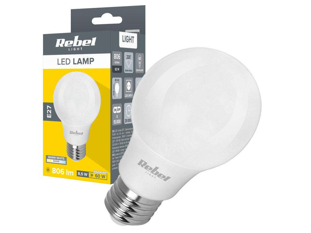 Bec LED E27 8,5W 3000K 230V ZAR0551Parametrii tehnici: