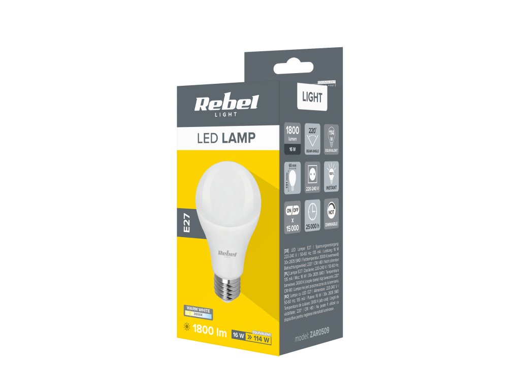 Bec LED E27 A65 16W 3000K 230V Rebel