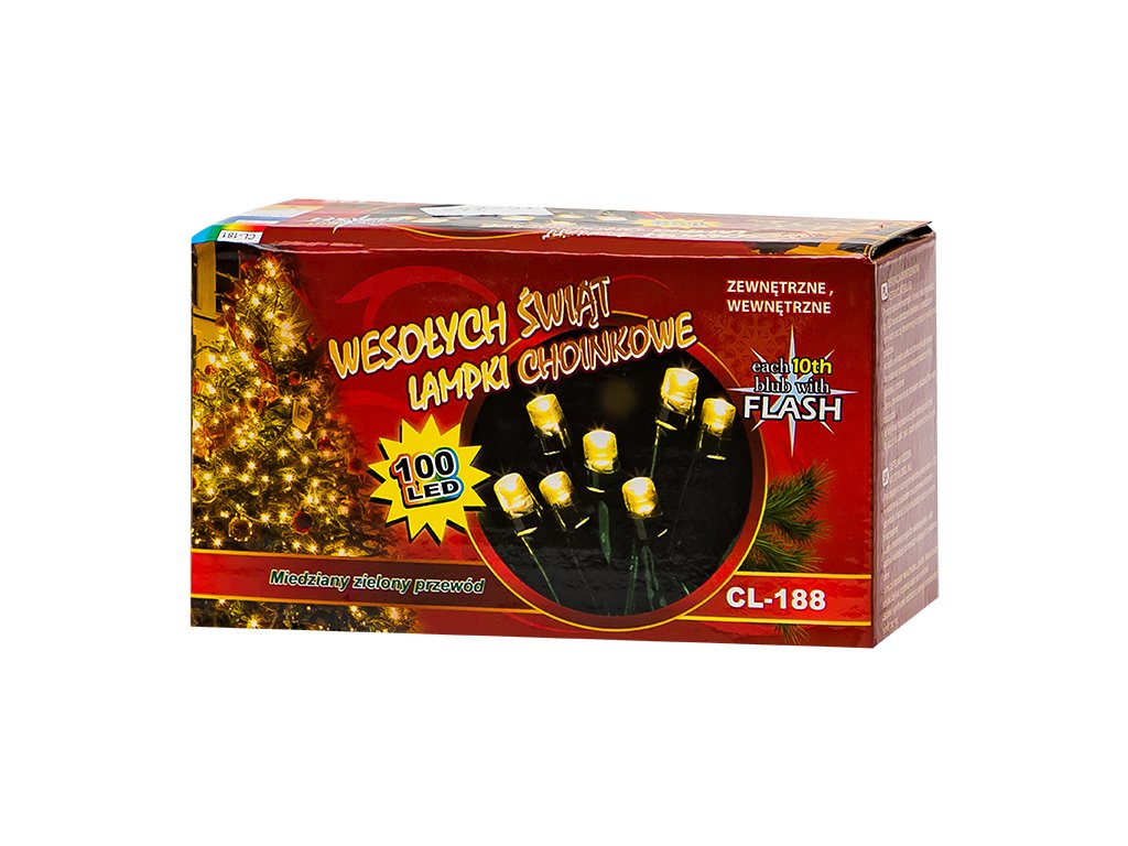 Iluminat LED etanș pentru bradul de Crăciun în culoarea alb cald cu efect de fulger, destinat utilizării atât în interior, cât și în exterior.