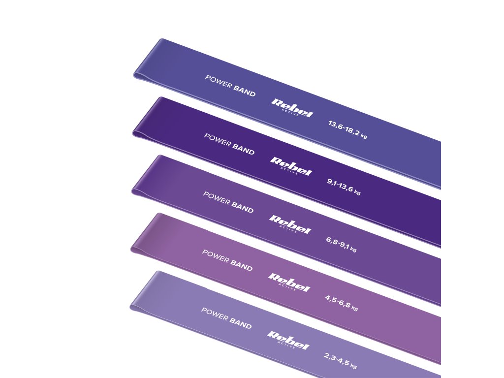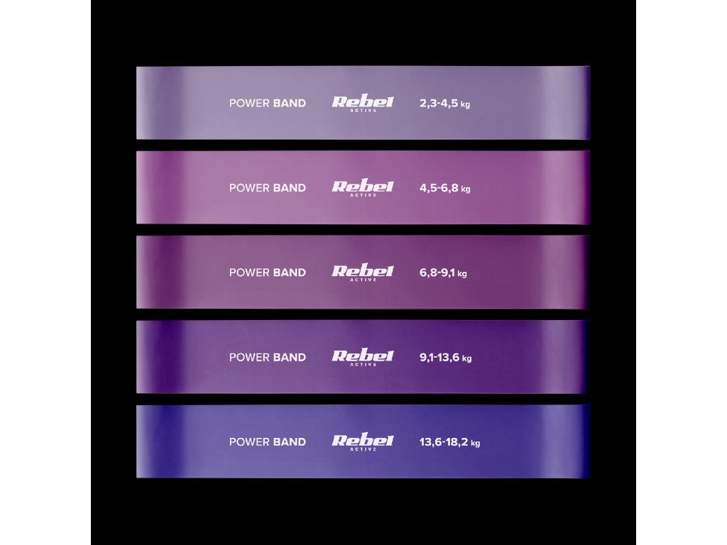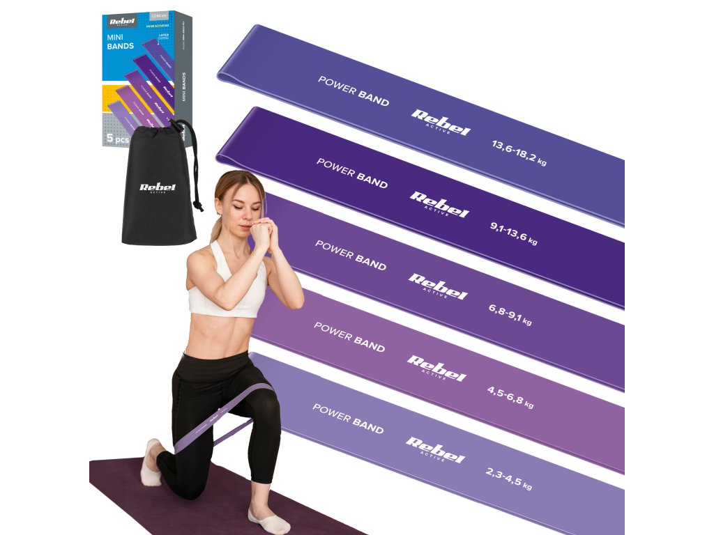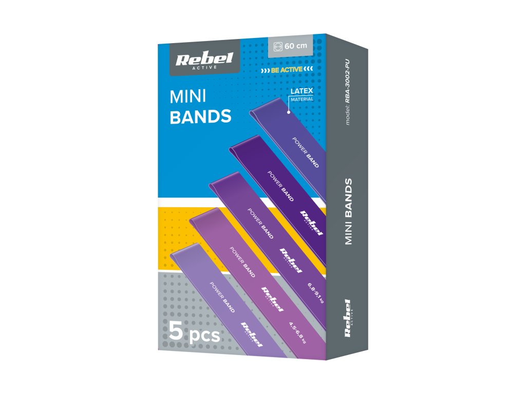 Benzi elastice pentru exerciții - Mini Band L, 2.3-18.2 kg, 5 benzi, REBEL ACTIVE