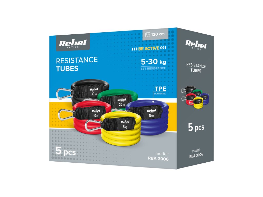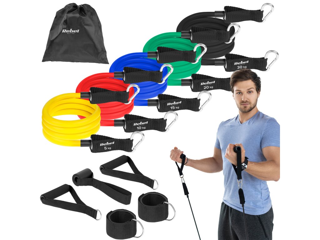 Benzi elastice pentru exerciții - Power Tube Set, 5-30 kg, REBEL ACTIVE