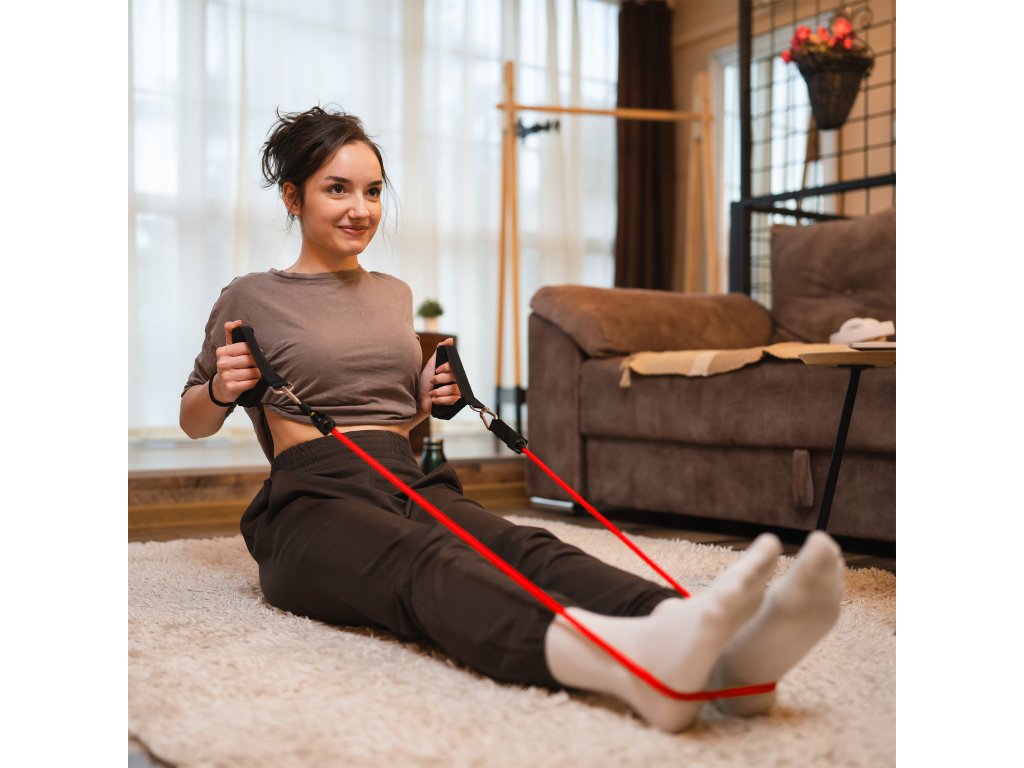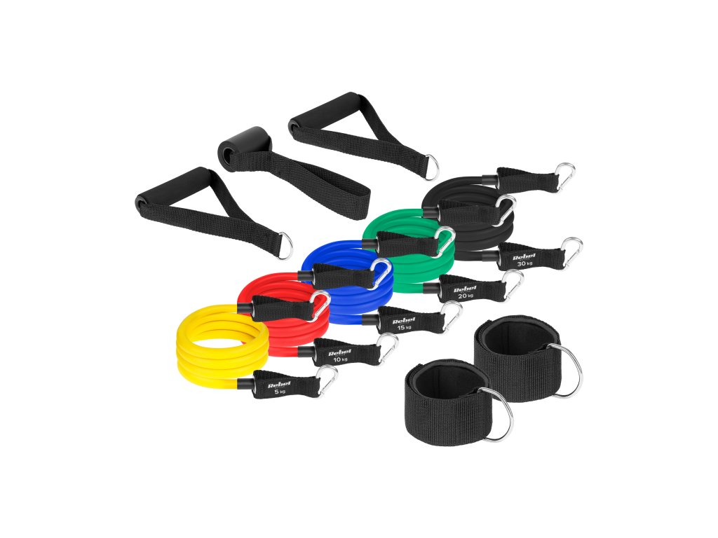 Setul include: 5x extensor, 2x curea pentru gleznă, 2x mâner, 1x cheie, husă