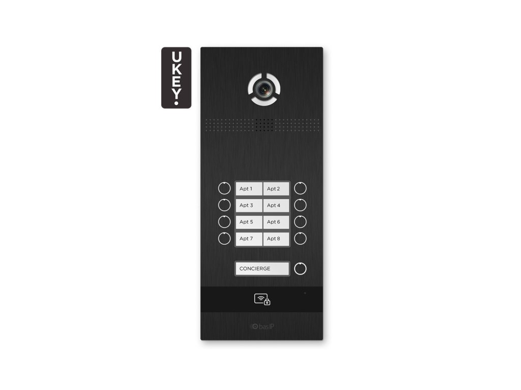 BI-08FB BLACK - Panou de interfon IP, 8-încuietori, UKEY, SIP 2.0 - BasIP
