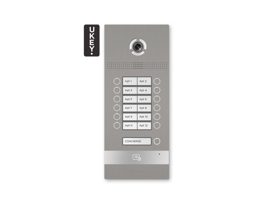 BI-12FB SILVER - Panou de interfon IP, 12 apartamente, UKEY, SIP 2.0 - BasIP
