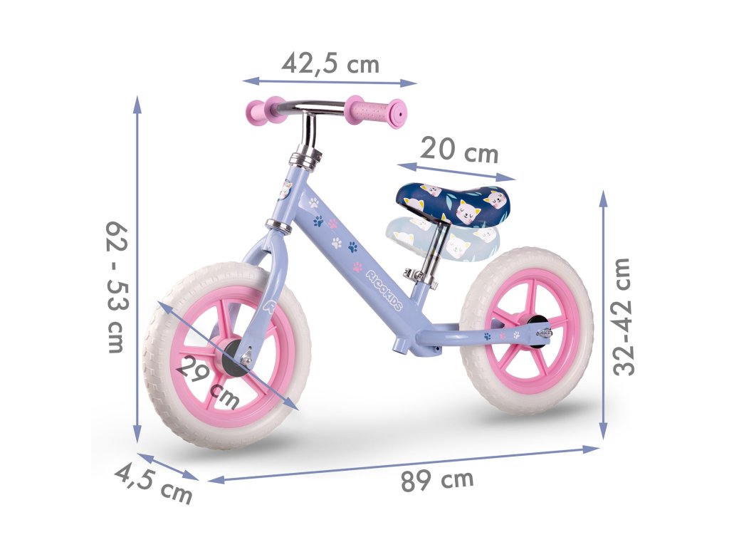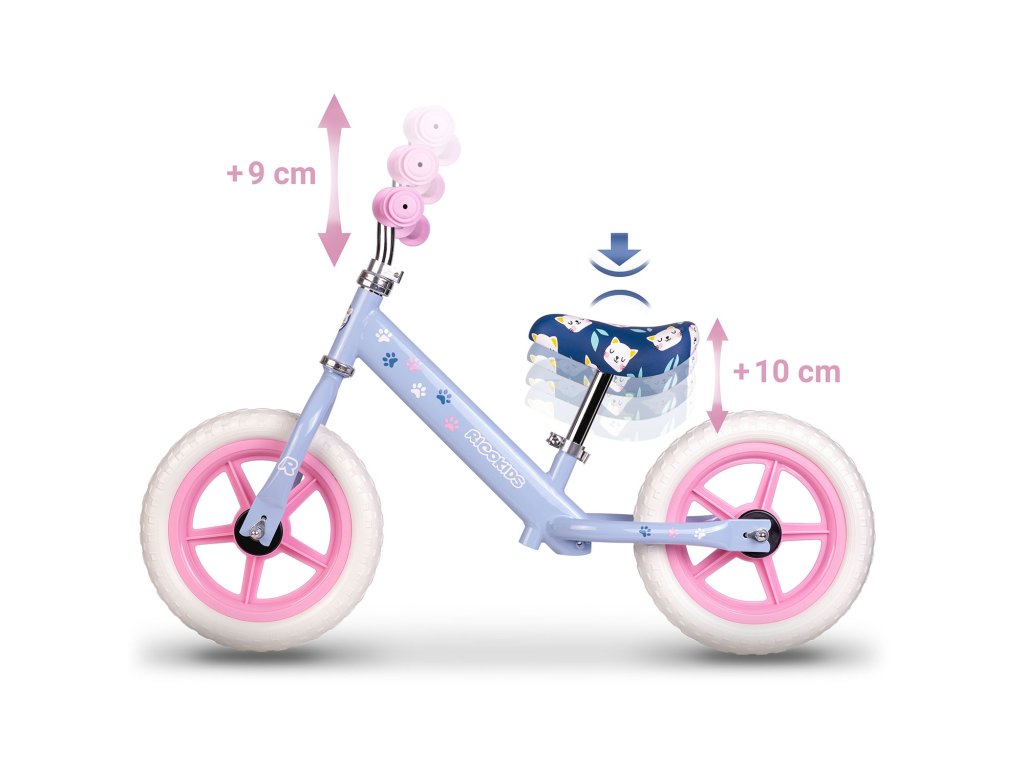- posibilitatea de reglare a înălțimii șeii cu 10 cm permite ajustarea bicicletei la înălțimea în schimbare a copilului, astfel încât bicicleta poate fi folosită pe o perioadă mai lungă de timp. Potrivire ideală: