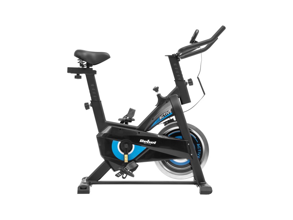 Visați la un antrenament intens în confortul casei  Bicicleta spinning este soluția ideală pentru dumneavoastră! Bicicleta Rebel Active, proiectată având în vedere durabilitatea, are un volant de 5 kg care asigură o rotație lină și stabilă în timpul antrenamentului. Frâna mecanică și pedalele cu coș unilaterale garantează siguranța și controlul asupra antrenamentului.