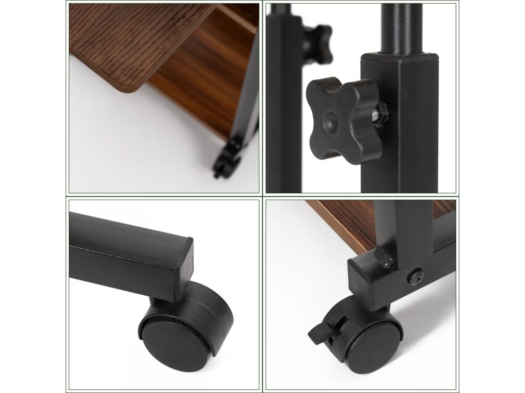 - Biroul este echipat cu patru roți pivotante (inclusiv), care facilitează mutarea mobilierului. Două dintre ele au o funcție de blocare, permițându-vă să fixați biroul într-o poziție aleasă.